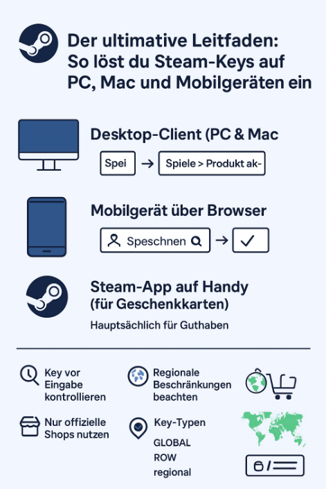 Steam-Keys einlösen ist wirklich kein Hexenwerk, egal ob man grade am Gaming-PC sitzt, den Mac angeschmissen hat oder mit dem Handy auf der Couch rumhängt. Ein paar Klicks, und schon hat man Zugriff auf neue Spiele.