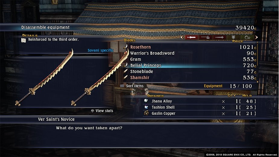 In The Last Remnants, only the main character is free you manage the development of his equipment. Your party members will also continue to develop their equipment by asking for raw materials that you find when exploring and eradicating enemies. However, they can also ask for equipment that you are not wearing for their use.